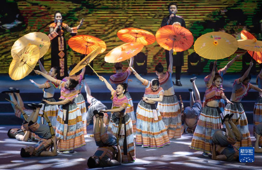 1月18日,以“同心筑厚誼 攜手共發(fā)展”為主題的2023年中越跨國春節聯(lián)歡晚會(huì )在云南省紅河哈尼族彝族自治州河口瑤族自治縣舉行。來(lái)自?xún)蓢奈乃嚬ぷ髡咴谕頃?huì )上表演了歌舞、雜技節目,共迎新春佳節。