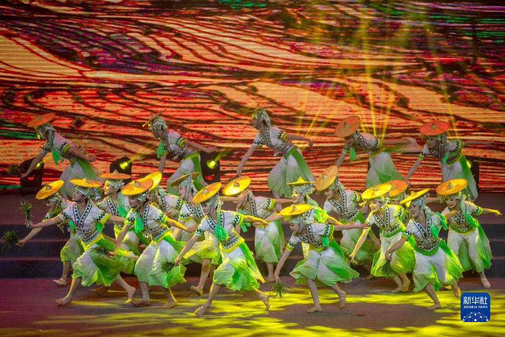 1月18日,紅河州歌舞團和紅河縣文化館的演員在表演舞蹈《秧姑娘》。