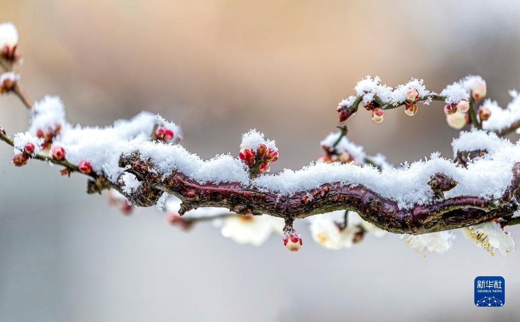 重慶市南川區梅華園,梅花被雪覆蓋(1月15日攝)。