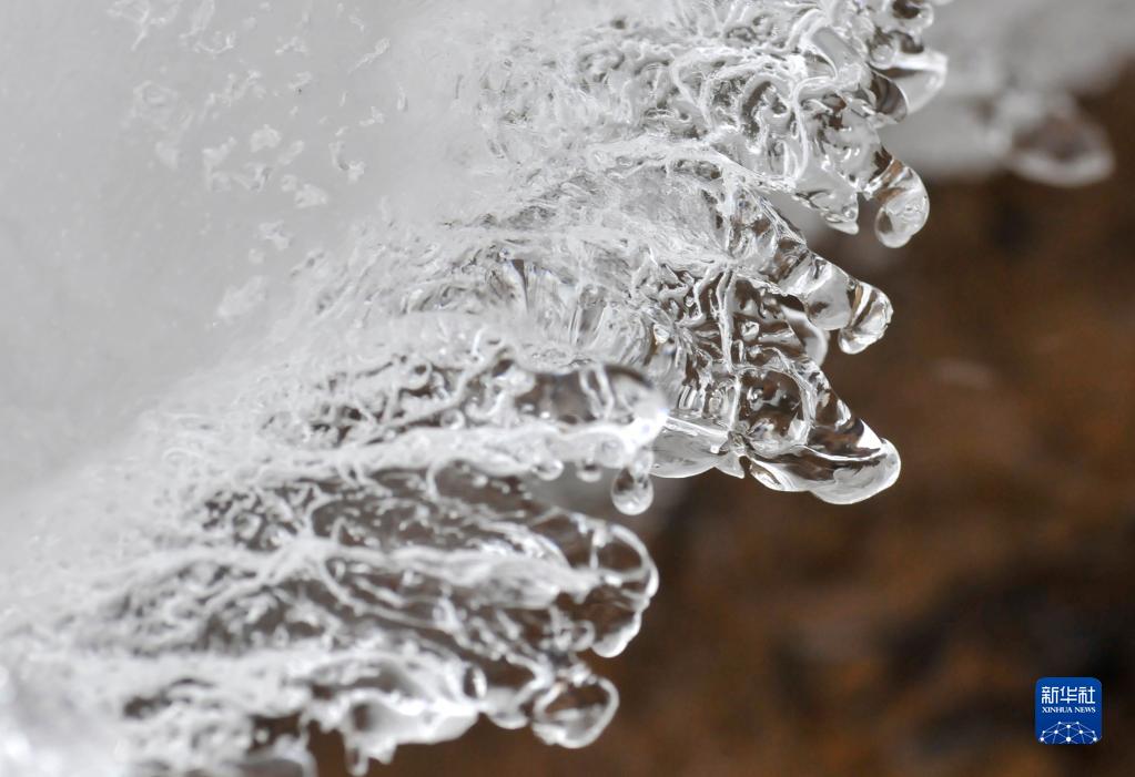 云南省香格里拉市建塘鎮溪流上的冰(1月15日攝)。