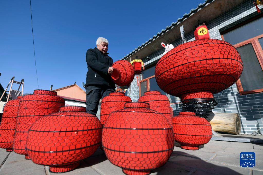 1月18日,在豐寧縣選將營(yíng)鄉二道營(yíng)村非遺就業(yè)工坊,工人在檢查等待發(fā)貨的鐵藝燈籠。