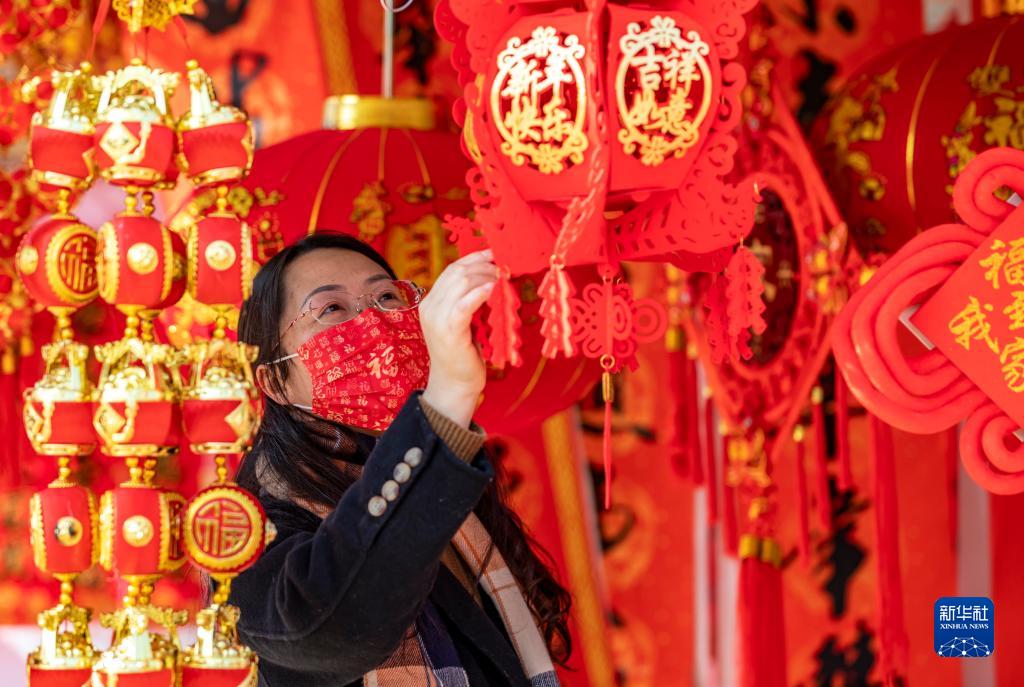 1月19日,在湖南省隆回縣桃花坪街道朝陽(yáng)市場(chǎng),市民在選購新年飾品。