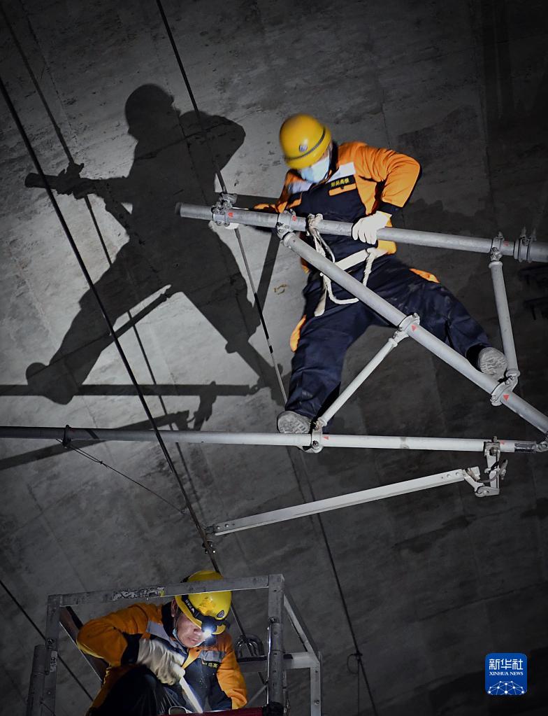 冬日凌晨,地下30米的隧道里,工作人員趴在冰涼的軌枕上,認真檢查每一米線(xiàn)路和每一個(gè)螺絲?!斑@幾天降溫,線(xiàn)路易出現伸縮變化,大家檢查時(shí)一定要仔細?!标愱?yáng)陽(yáng)手持軌道檢查尺一邊仔細測量鋼軌水平數據,一邊交代著(zhù)檢查重點(diǎn)?!半m然夜間工作很辛苦,但看到列車(chē)滿(mǎn)載著(zhù)旅客安全、正點(diǎn)到達目的地,所有的付出都值得?!标愱?yáng)陽(yáng)說(shuō)。