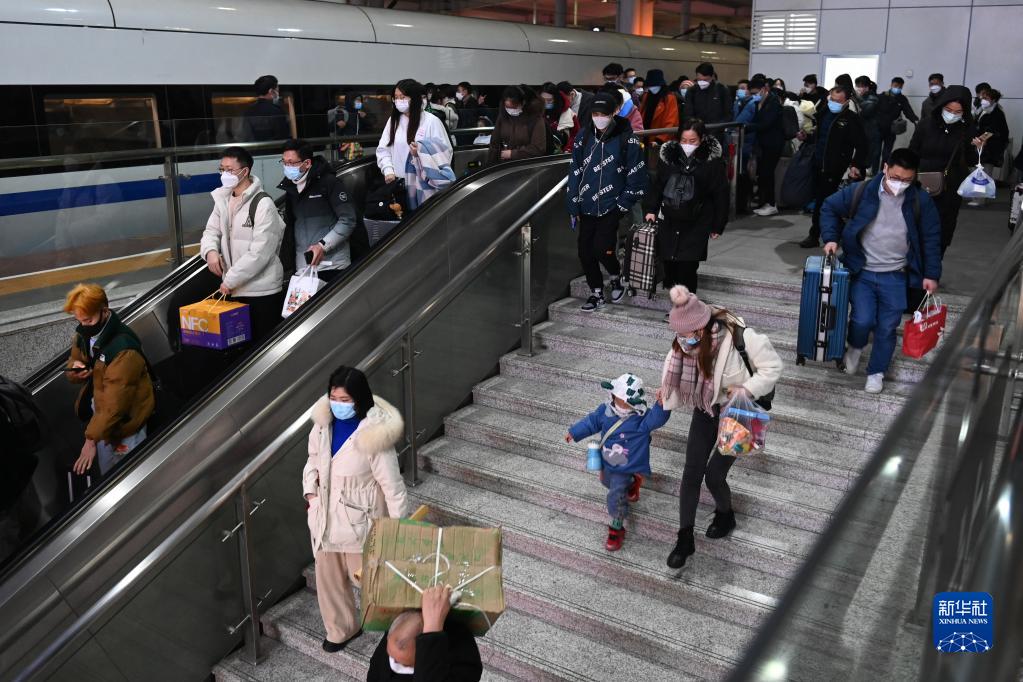 D2246/D2247次列車(chē)到達重慶北站后,旅客們有序出站(1月18日攝)。