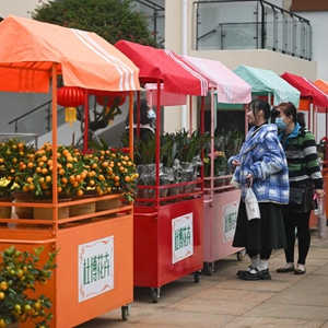1月18日,顧客在海南熱帶花卉交易(拍賣(mài))市場(chǎng)選購花卉。