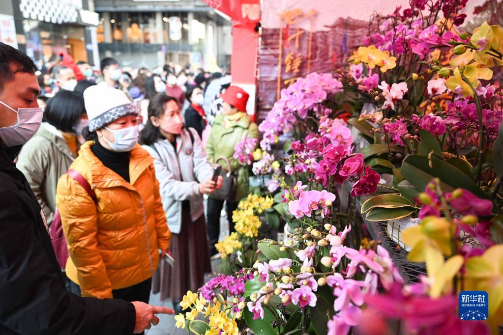 當日,廣州越秀西湖花市正式啟動(dòng),不少市民前來(lái)逛花市、選購鮮花,迎接新春佳節的到來(lái)。