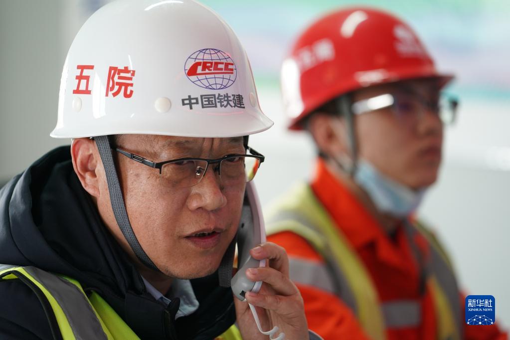 梅東冬在雄安新區至北京大興國際機場(chǎng)快線(xiàn)(R1線(xiàn))一標段項目部監控室工作(1月18日攝)。