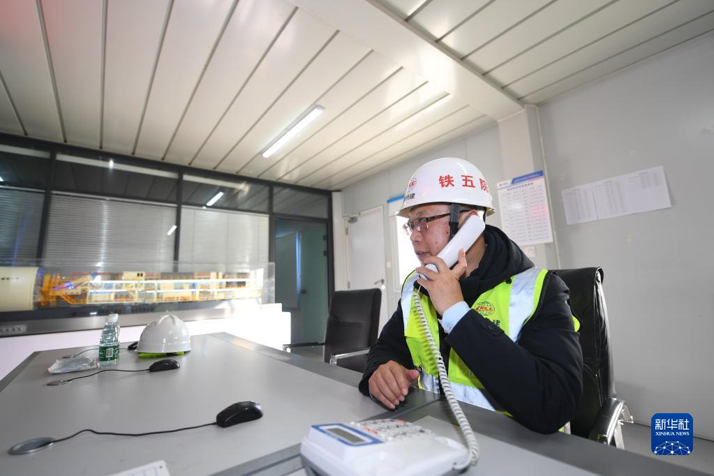 梅東冬在雄安新區至北京大興國際機場(chǎng)快線(xiàn)(R1線(xiàn))一標段項目部監控室工作(1月18日攝)。