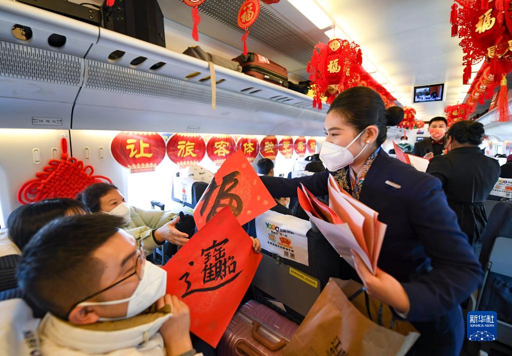臨近春節,中國鐵路蘭州局集團有限公司銀川客運段將部分列車(chē)車(chē)廂裝扮一新,組織青年職工在列車(chē)上表演自編的節目,為旅客送上小禮物,讓人們將旅途中的歡樂(lè )帶回家。