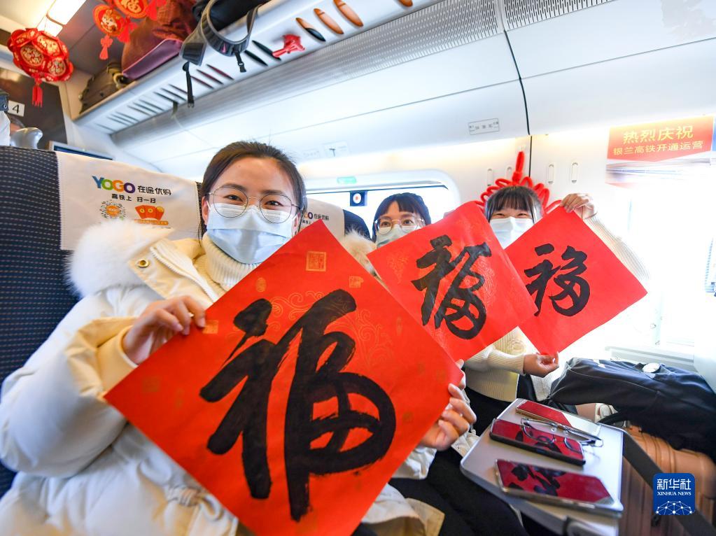 1月19日,在由銀川開(kāi)往蘭州的D8933次列車(chē)上,旅客展示收到的“?!弊?。