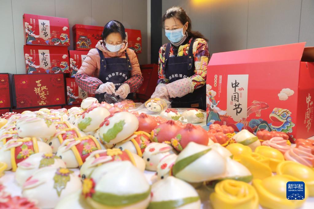 春節臨近,安徽省淮北市一些面點(diǎn)師以兔為主題,創(chuàng )作出各式各樣的“萌兔”花饃,供應節日市場(chǎng),迎接新春佳節的到來(lái)。