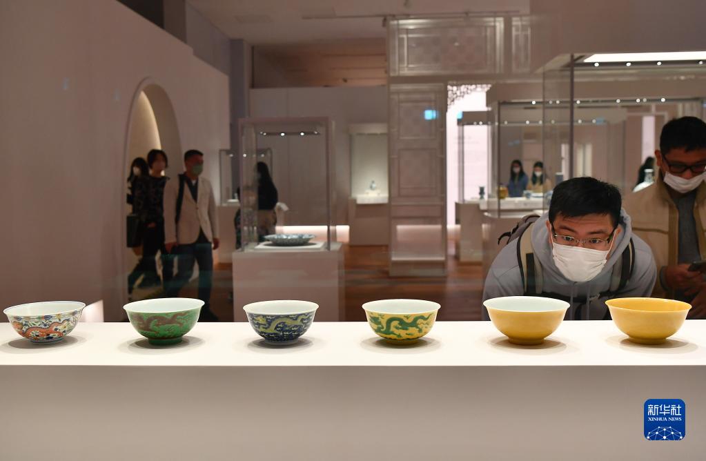 1月19日,觀(guān)眾在觀(guān)看一套紋碗。