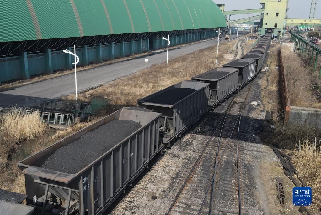 1月19日,在中煤新集能源股份有限公司劉莊煤礦,滿(mǎn)載電煤的專(zhuān)列駛出礦區(無(wú)人機照片)。