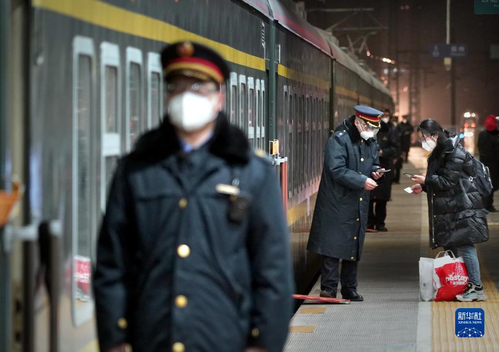 1月20日,旅客在鄭州站乘坐首趟“紅旗渠”號列車(chē)。