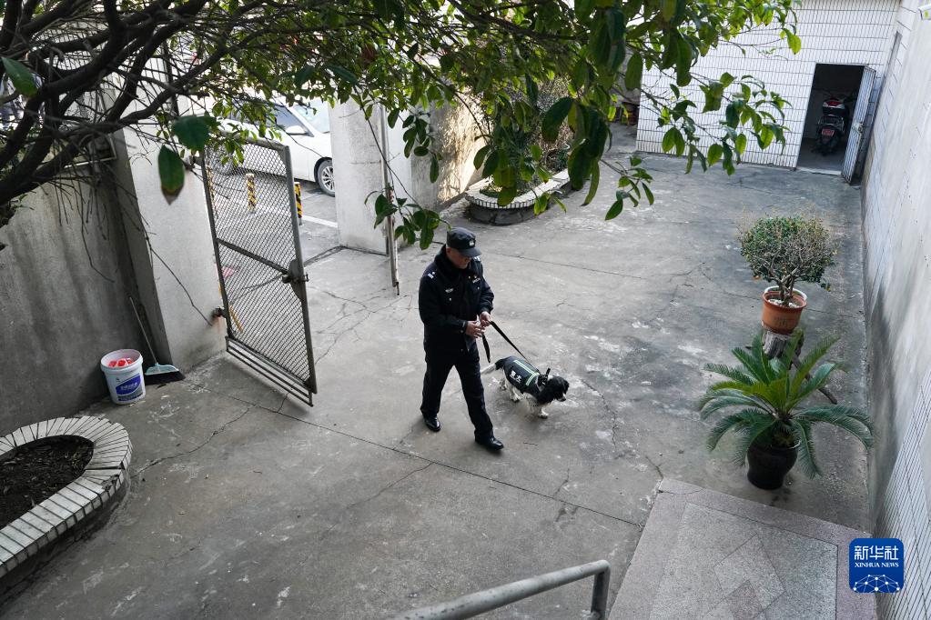 1月18日,民警王支斌和警犬“和平”在巡邏后回到裕溪口警務(wù)室。