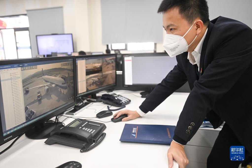 1月19日,在南方航空海南分公司現場(chǎng)運行中心,簽派員王秋遠通過(guò)監控畫(huà)面實(shí)時(shí)關(guān)注一架航班的動(dòng)態(tài)。