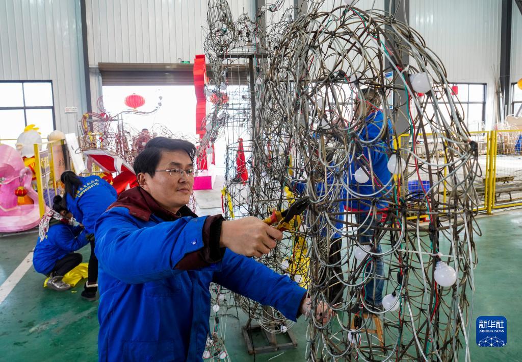 1月19日,在重慶市銅梁區太平鎮坪漆村龍燈彩扎基地的鄉村振興車(chē)間內,幾名村民制作銅梁龍燈。