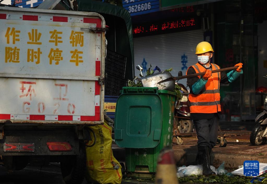 1月21日,在江西省撫州市廣昌縣竹亭路,環(huán)衛工人謝金清在清理垃圾。