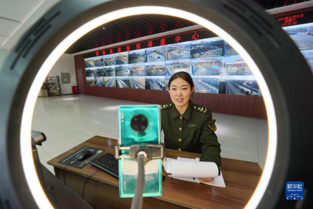 1月21日,在河北邢臨高速公路開(kāi)發(fā)有限公司指揮調度中心,主播曹曉玉介紹路況信息。