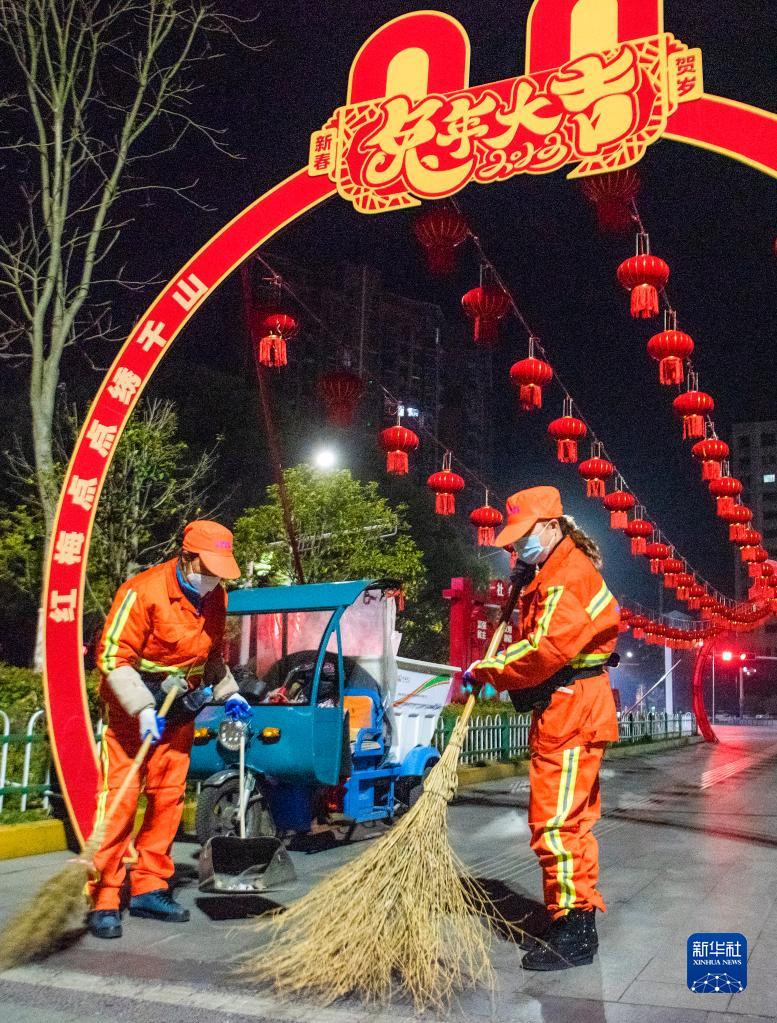 1月21日,在安徽省蕪湖市繁昌區繁陽(yáng)鎮渡江大道上,環(huán)衛工人在進(jìn)行保潔作業(yè)。