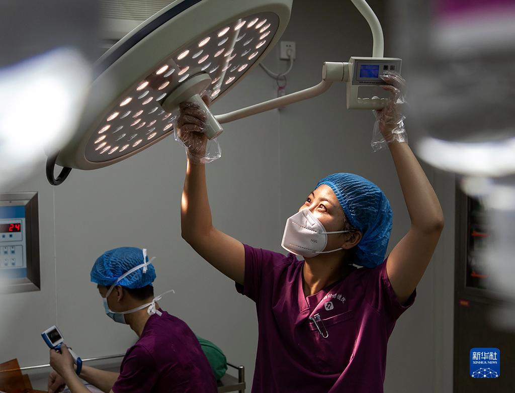 1月21日,河南省焦作市博愛(ài)縣婦幼保健院的醫護人員在手術(shù)室進(jìn)行術(shù)前準備。