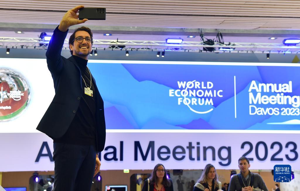 1月20日,在瑞士達沃斯,一名與會(huì )者在世界經(jīng)濟論壇2023年年會(huì )閉幕后留影。
