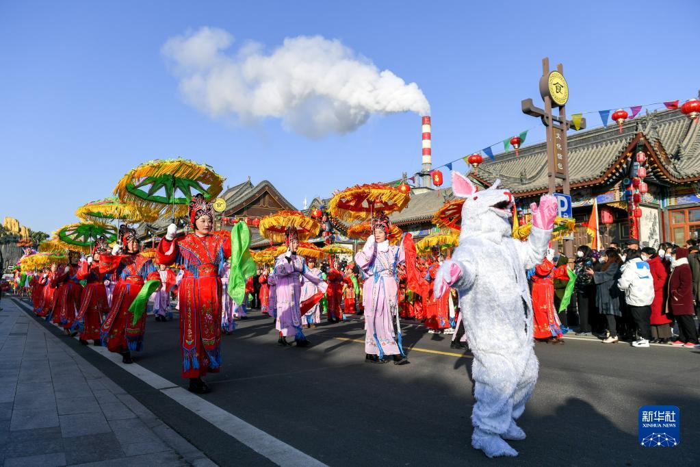 1月21日在惱包村美食街拍攝的玉兔迎春方隊。