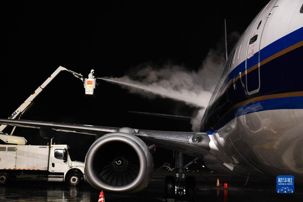 1月17日晚,在貴州貴陽(yáng)龍洞堡國際機場(chǎng),南方航空的機務(wù)人員進(jìn)行除防冰作業(yè),為保障春運航班安全進(jìn)出港默默堅守。