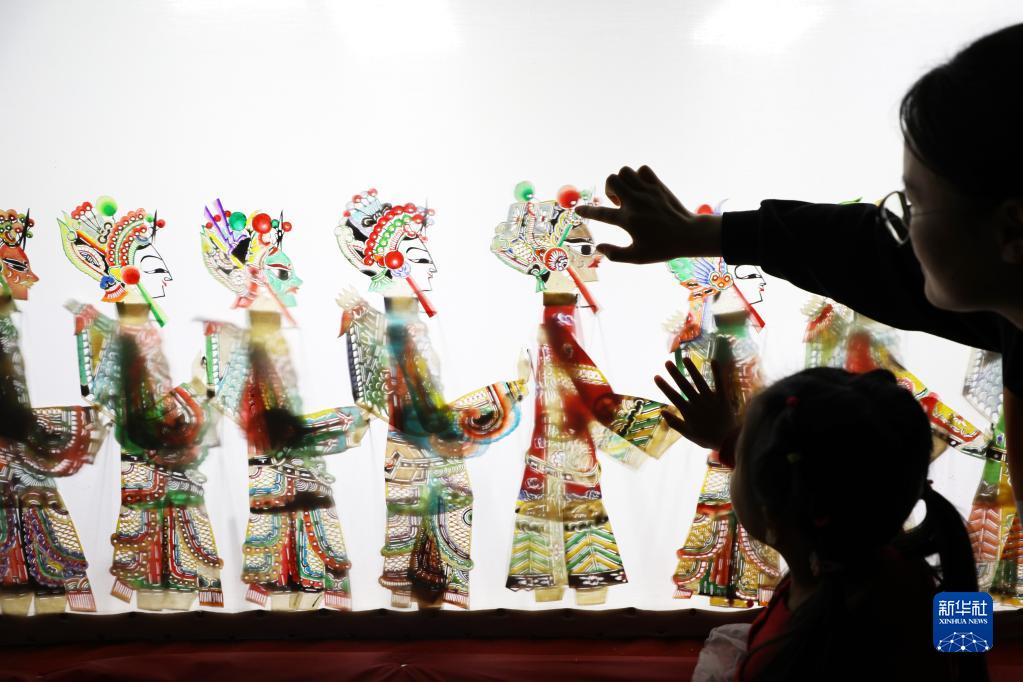1月13日,市民帶著(zhù)孩子在河北省唐山市豐潤區文化館近距離感受皮影藝術(shù)。