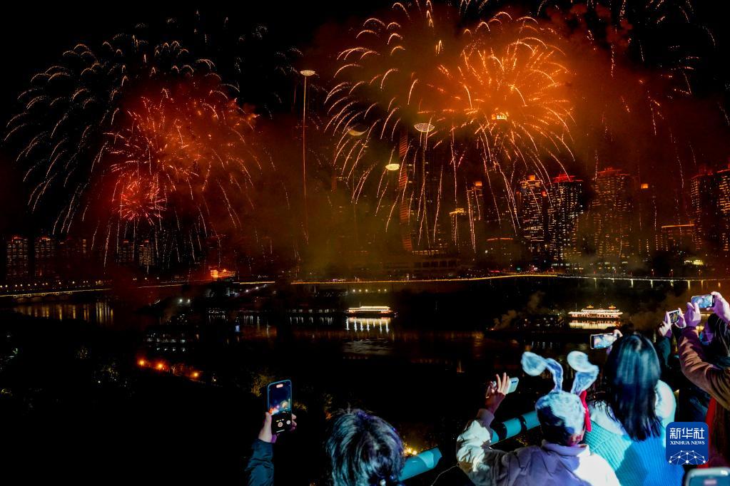 1月21日除夕夜,由重慶市市委、市政府組織開(kāi)展的“新時(shí)代、新征程、新重慶”光影無(wú)人機焰火表演在重慶長(cháng)江、嘉陵江兩江交匯處舉行。3000架無(wú)人機約20分鐘的跨年焰火表演,營(yíng)造出歡樂(lè )祥和、辭舊迎新的濃厚氛圍,為市民和游客送上新春祝福。