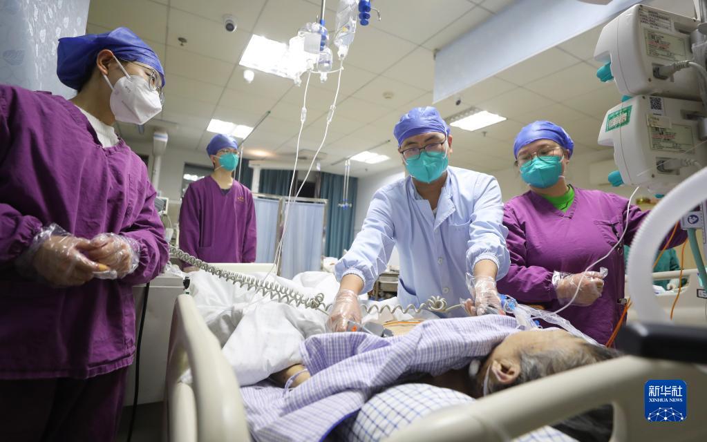 1月22日凌晨,在湖南省衡陽(yáng)市,南華大學(xué)附屬第一醫院ICU的醫務(wù)工作者對患者進(jìn)行救治。