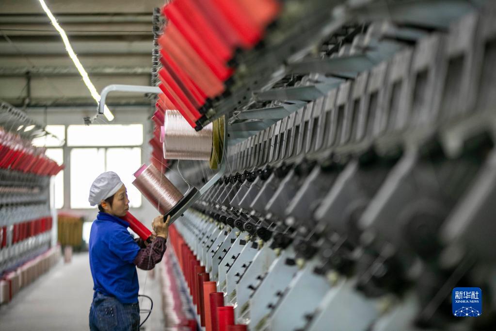 1月21日,在江蘇同欣化纖有限公司,紡織工人在生產(chǎn)一線(xiàn)作業(yè)。