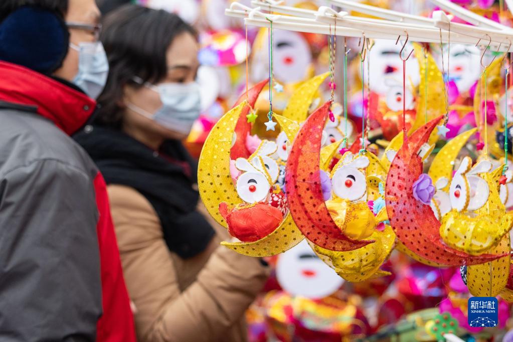 1月22日,游人在江蘇南京夫子廟花燈市場(chǎng)挑選兔子燈。