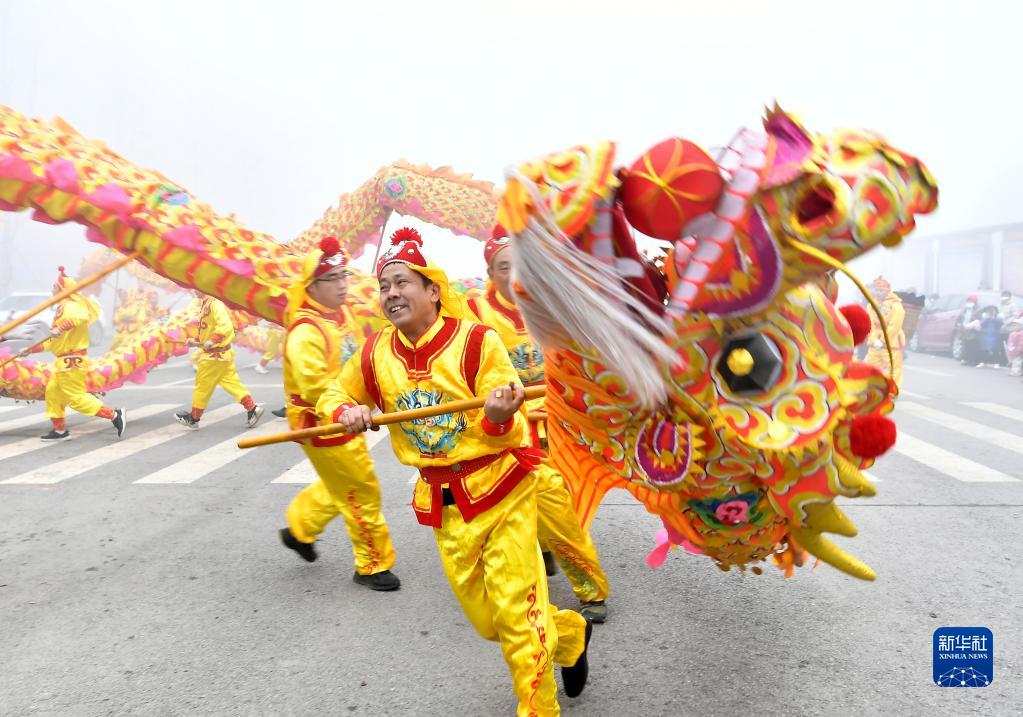 1月22日,民間藝人在四川省廣安市前鋒區代市鎮舞龍賀新春。