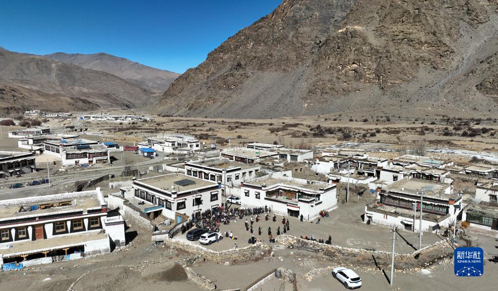 西藏日喀則市芒普鄉普村的“村晚”現場(chǎng)(1月21日攝,無(wú)人機照片)。