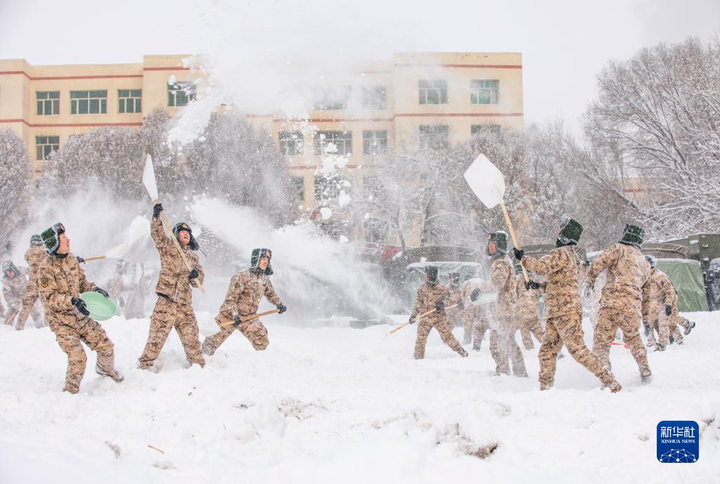 1月22日,武警新疆總隊某支隊組織官兵開(kāi)展打雪仗活動(dòng)。