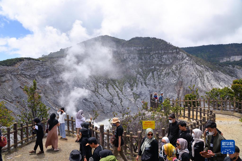 1月22日,人們在印度尼西亞西爪哇省萬(wàn)隆附近的覆舟火山參觀(guān)游覽。