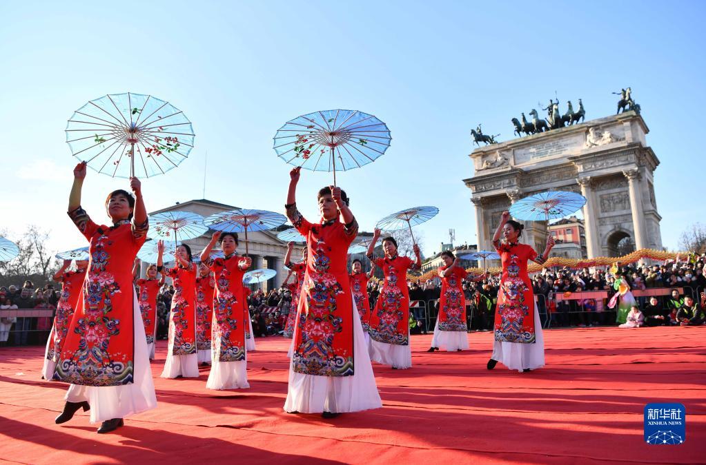 1月22日,在意大利米蘭,演員在春節聯(lián)歡活動(dòng)上表演。