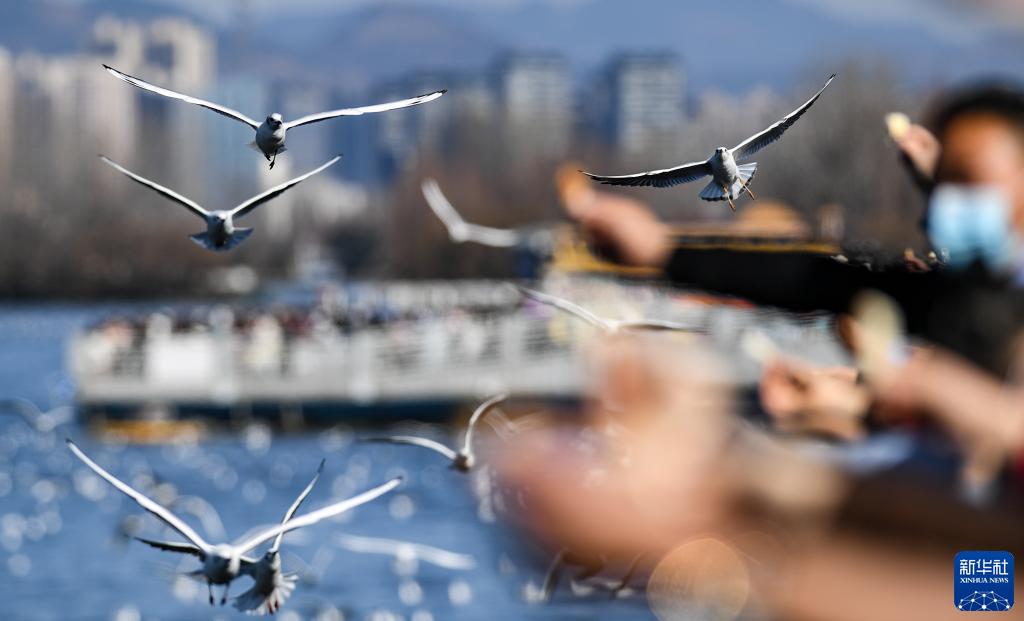 當日是農歷正月初二,云南省昆明市滇池海埂大壩上熱鬧非凡,來(lái)自全國各地的游客前來(lái)觀(guān)賞紅嘴鷗,歡度新春佳節。
