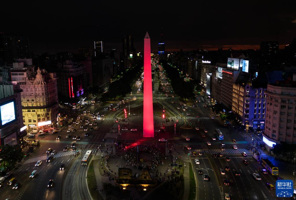 阿根廷首都地標建筑方尖碑點(diǎn)亮“中國紅”
