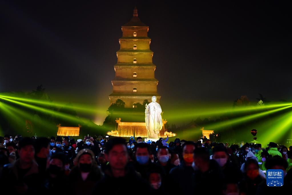 人們在西安大雁塔景區游玩(1月22日攝)。