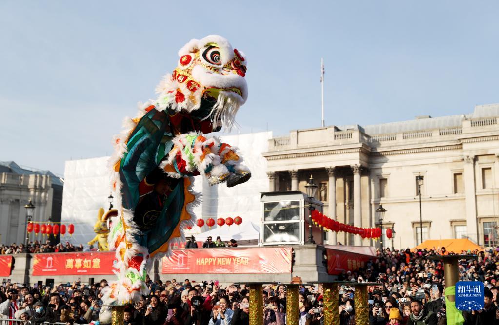 當日,英國倫敦特拉法加廣場(chǎng)舉行春節慶典,慶祝兔年新春佳節。