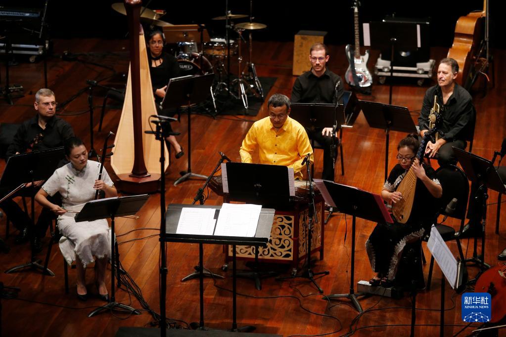 1月21日晚,在巴西首都巴西利亞普利尼奧·馬科斯劇院,中國民樂(lè )演奏家與巴西利亞室內樂(lè )團的音樂(lè )家們在2023年“歡樂(lè )春節”音樂(lè )會(huì )上演奏樂(lè )曲。