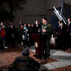 1月22日,在美國加利福尼亞州蒙特雷帕克市政廳,洛杉磯縣警察局局長(cháng)羅伯特·魯納參加新聞發(fā)布會(huì )。