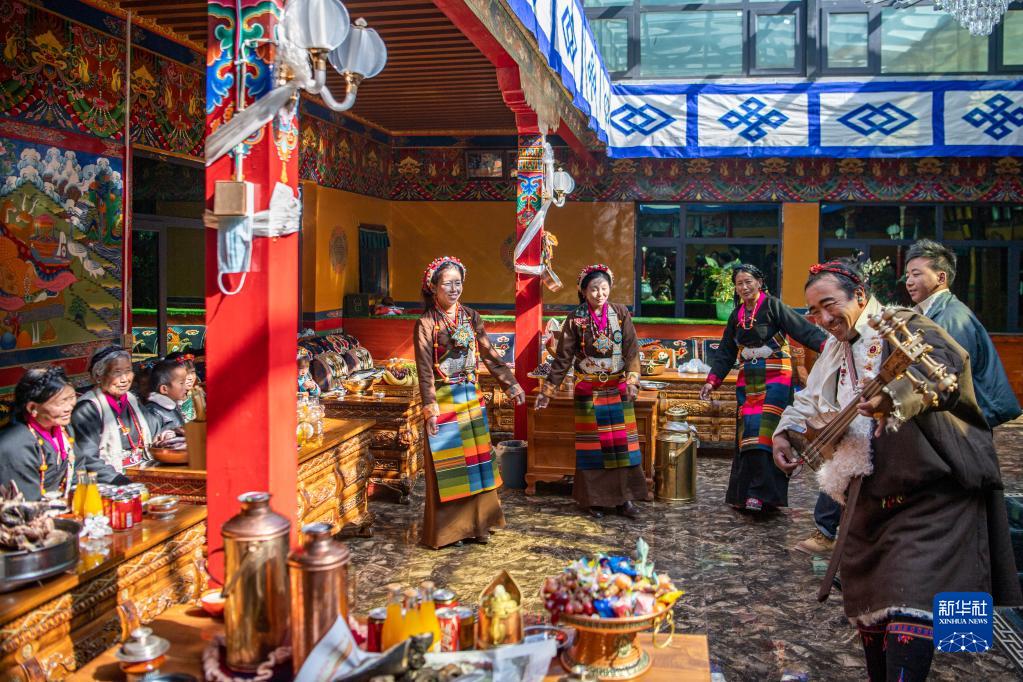 在藏歷農家年的家庭聚會(huì )中,人們彈奏扎念琴(1月23日攝)。