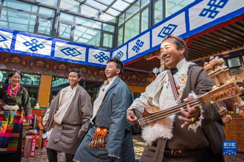 在藏歷農家年的家庭聚會(huì )中,人們彈奏扎念琴(1月23日攝)。