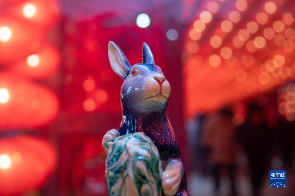 在第二屆黑龍江冰雪非遺周展區內拍攝的陶瓷兔子(1月22日攝)。