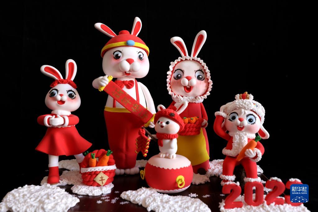 在山東省棗莊市光明路街道利民社區拍攝的民間藝人創(chuàng )作的面塑作品《新春祝?!罚?月20日攝)。