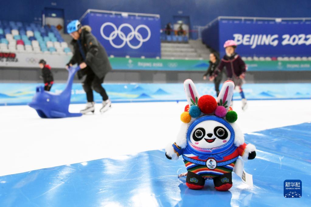 在國家速滑館拍攝的北京冬奧會(huì )吉祥物“冰墩墩”兔年特別版“兔墩墩”(1月22日攝)。