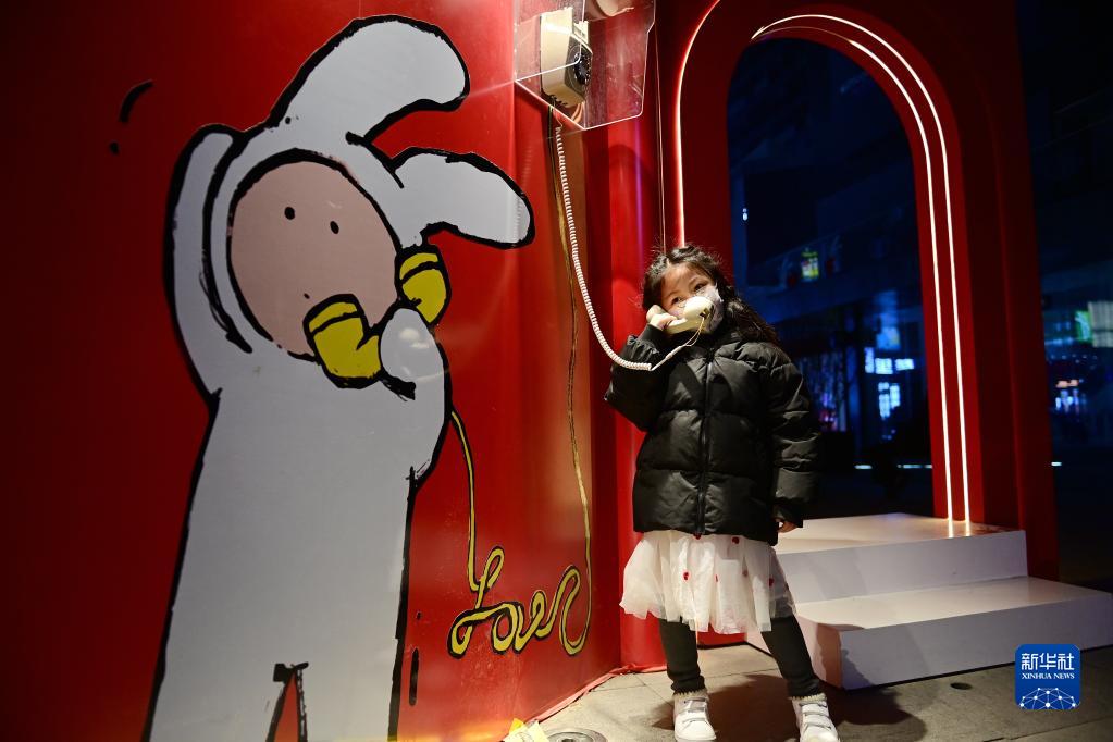 在西安大都薈,一名小朋友體驗“不二兔”主題裝置藝術(shù)(1月22日攝)。